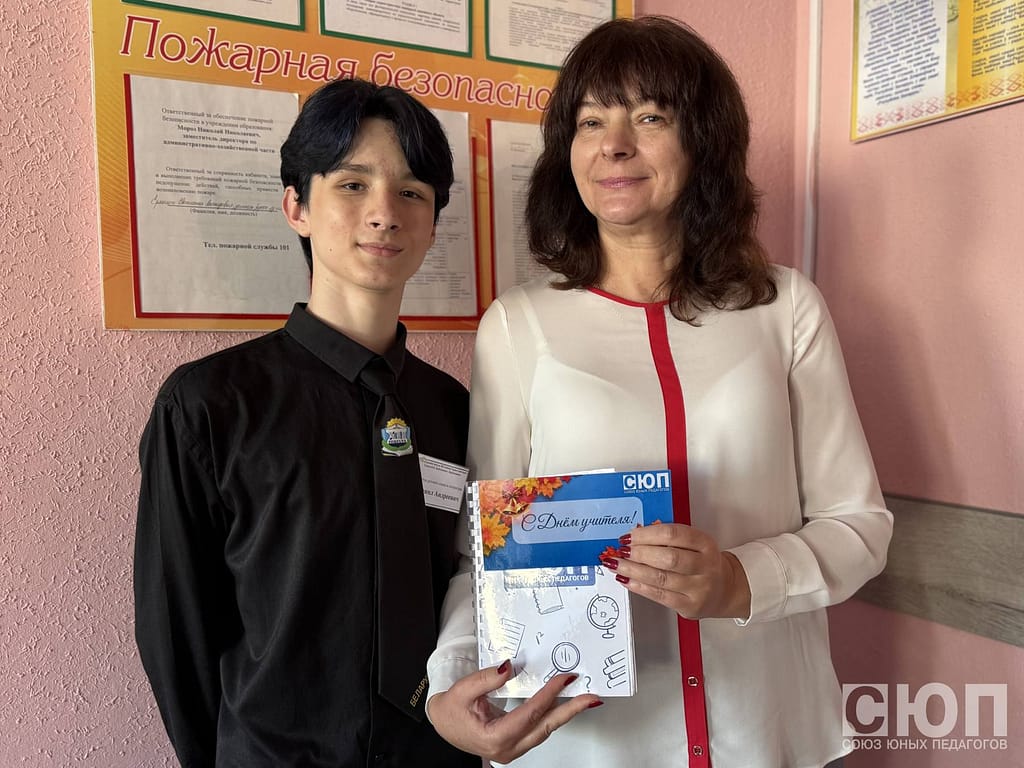 Даниил ВОЛЧЕК, член совета представительства в г. Барановичи присоединился к акции и поздравил учителей своей школы с наступающим праздником.
